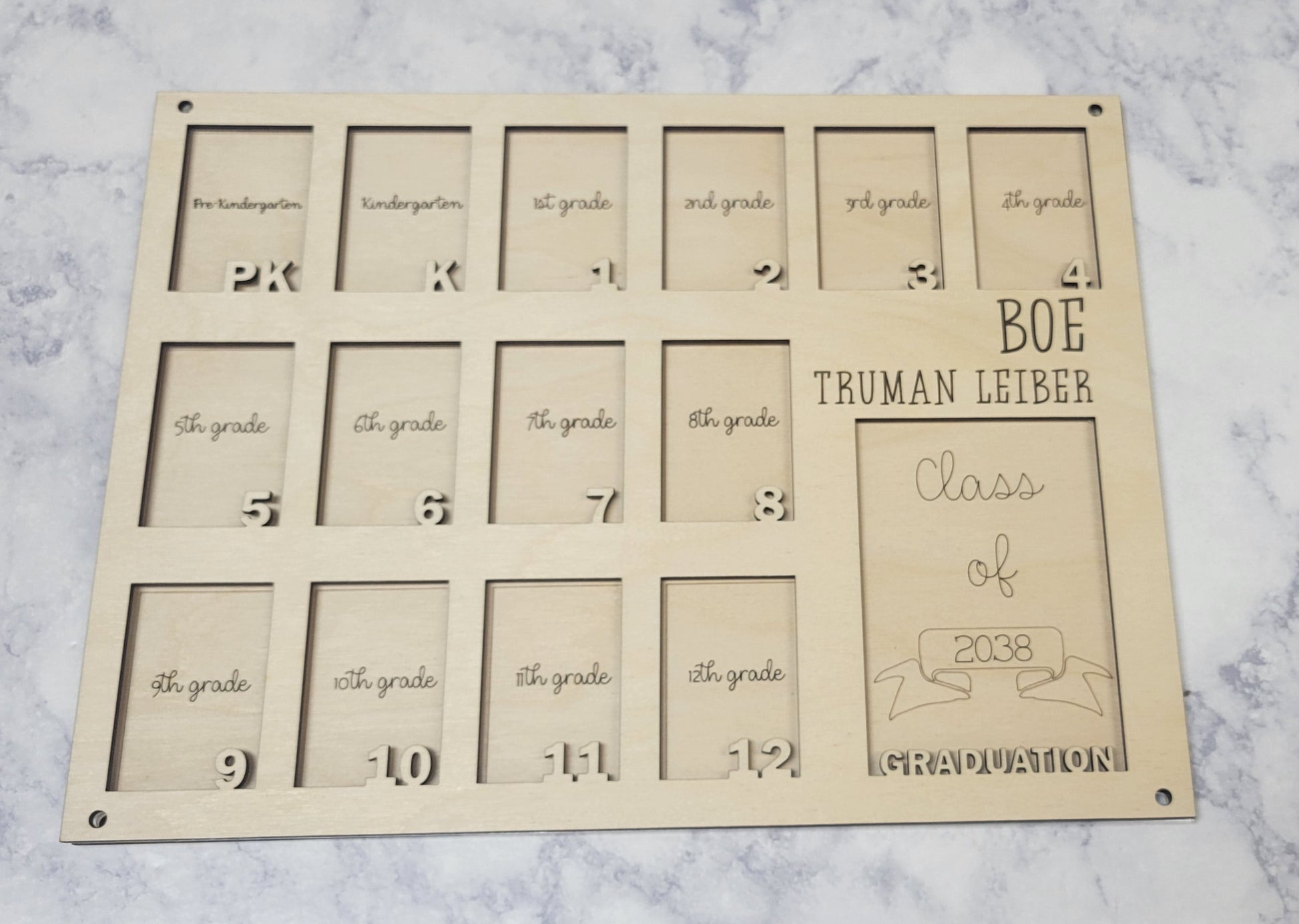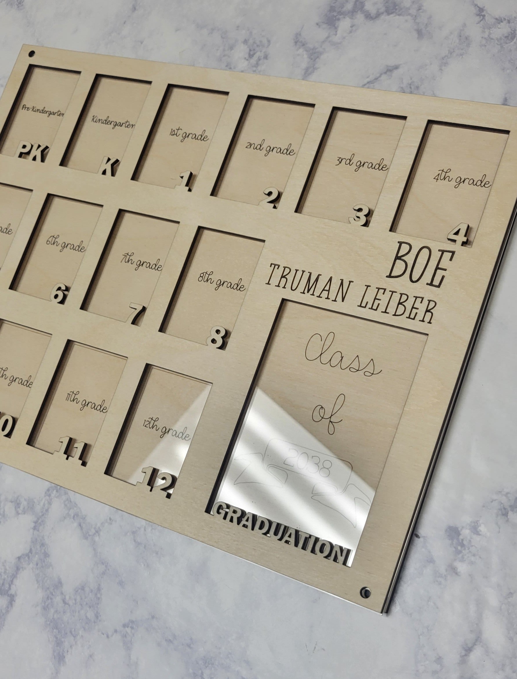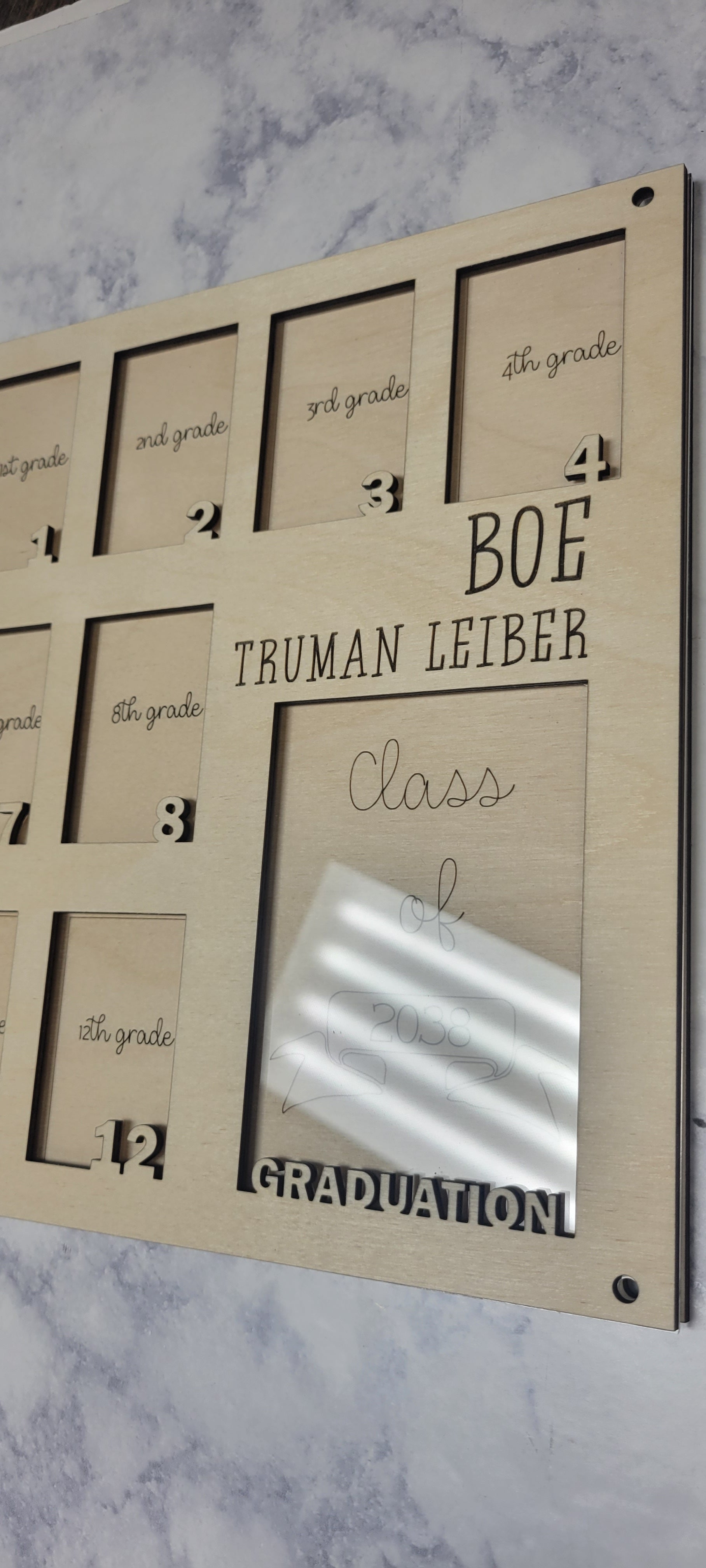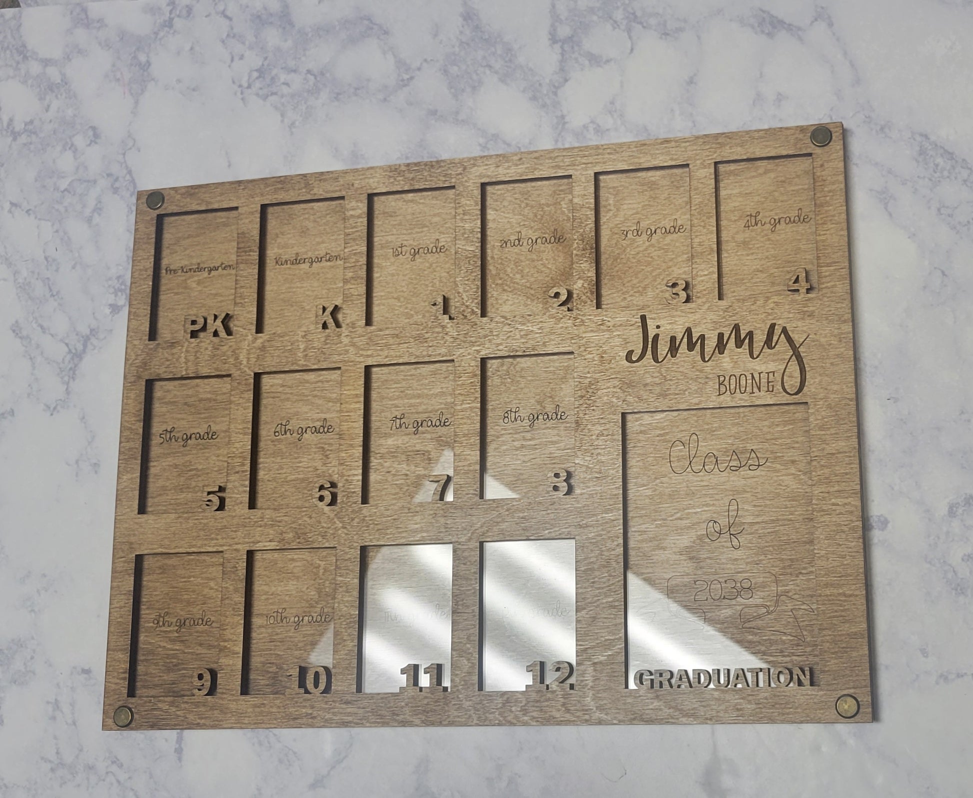 Treasure your child's school year photos forever in this custom frame. Choose to engrave the name or have a colored 3d name attached to the frame.